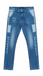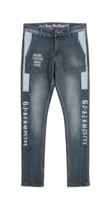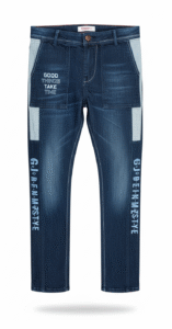 ROFYT “Thoughtful Style” Blue Denim – Men’s Jeans with Patch & Graphic Text