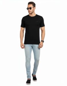 Men’s Premium Black Cotton T-Shirt – Size S – Classic Crew Neck | Soft & Breathable