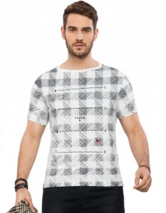 Men’s Plaid Print Cotton T-Shirt – White & Grey Casual Tee