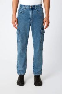 ROFYT Men’s Classic Blue Denim Cargo Jeans – Straight Fit