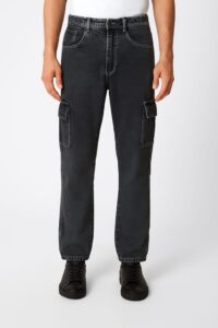 ROFYT-Men’s Washed Black Denim Cargo Jeans – Straight Fit