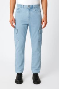 ROFYT-Men’s Light Blue Wash Denim Cargo Jeans – Straight Fit