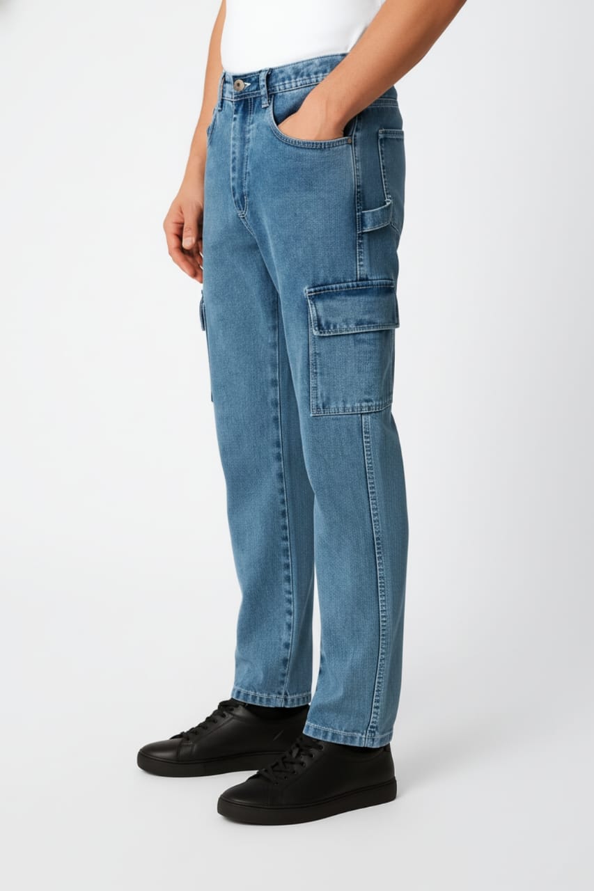 ROFYT Men’s Classic Blue Denim Cargo Jeans – Straight Fit