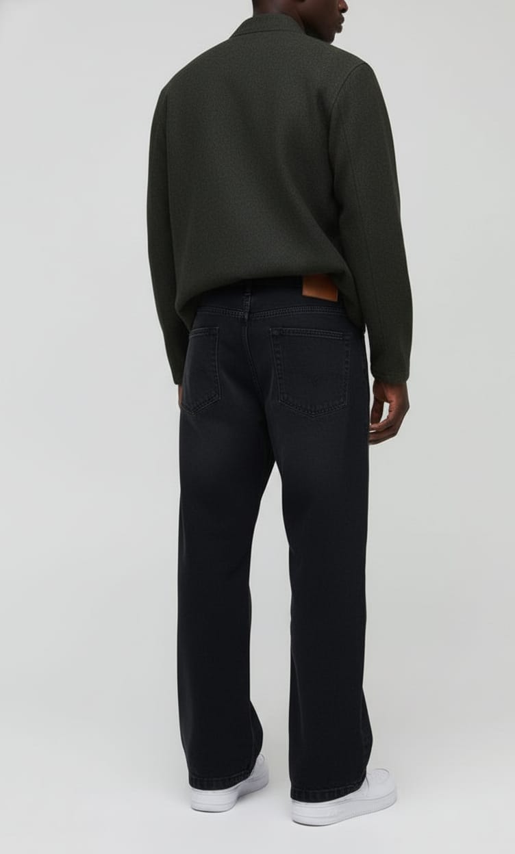 Your new essential for effortless style. These oversized baggy black jeans capture the modern streetwear look perfectly. With a clean dark wash and an ultra-relaxed, straight-leg fit, they offer a comfortable and bold alternative to skinny or slim denim. Cinch the waist for an exaggerated fit or wear them low-slung. The ultimate staple for skater, hip-hop, or grunge aesthetics.“