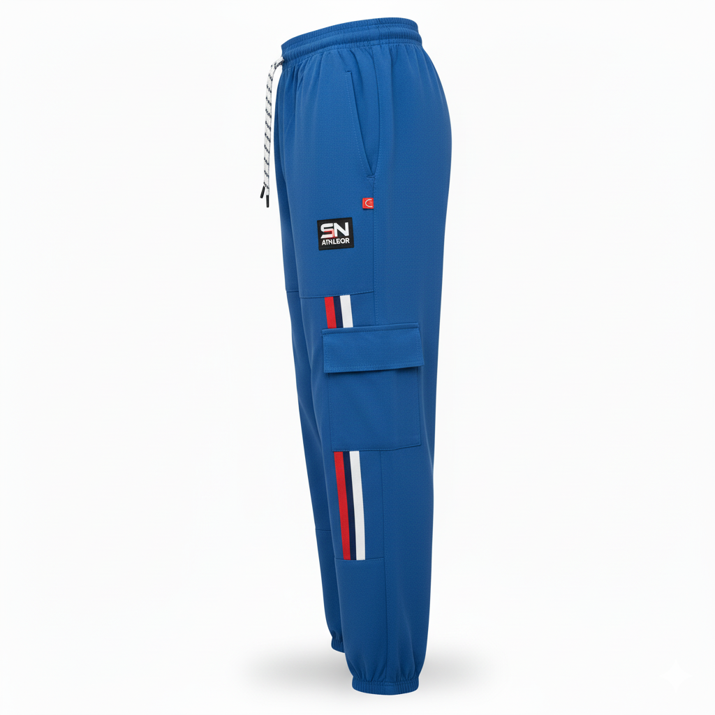 Elasticated Cuffs/Ankles: Tapered fit at the bottom, keeping the pants snug around the ankles, typical of jogger-style track pants.