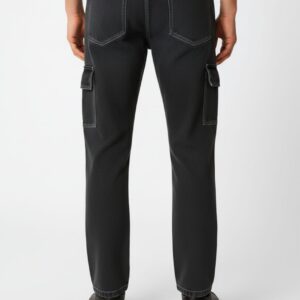 ROFYT-Men’s Straight Fit Washed Black Denim Cargo Jeans